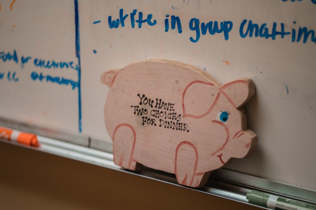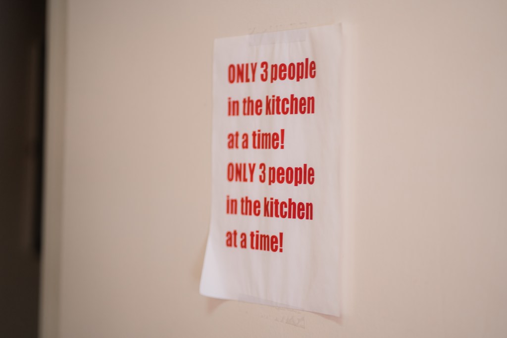 Inside, 17 women share the responsibilities of 17 chores on a weekly rotating basis, from washing windows to doing dishes – one chore for each of the 17 weeks in a semester.