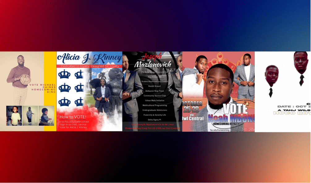As FAU gears up to celebrate its 60th year as a university, the battle for Homecoming royalty has been underway for the past week with voting starting today. Black FAU has a total of five candidates in this year’s race to royalty. Read below to meet this year’s candidates and be sure to visit https://fau.campuslabs.com/engage/ to cast your vote.